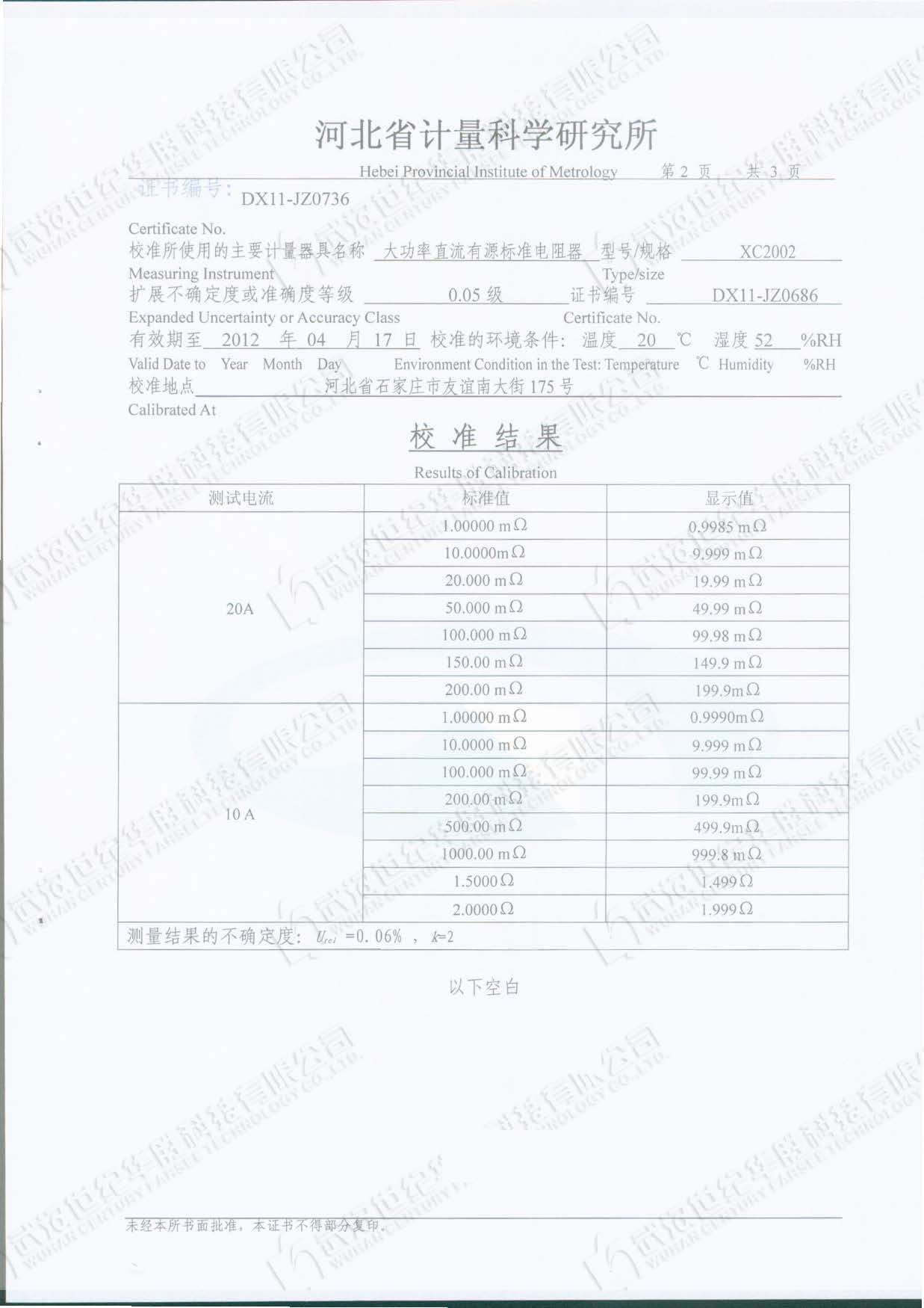2、量程: 100μΩ~1Ω (20A)